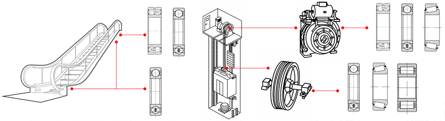 The elevator industry has high requirements for the performance of bearings, which are mainly reflected in high-speed operation, smoothness, and quietness. China is the largest manufacturing country and consumer market in the global elevator industry. Most of the world's well-known elevator companies have established factories in China. As one of the first bearing suppliers in the elevator industry to achieve import substitution, it has continuously provided supporting products for most of the leading enterprises for more than a decade and holds a leading share in the industry. The "Vibration Technical Standard for Special Bearings of Elevator Traction Machines" drafted by Guoyang Precision Machinery has become a benchmark for domestic bearing enterprises to enter the elevator industry. Our full range of products are widely used in parts such as the main machines of elevator traction machines, rope wheels, door machines, chain wheels, and escalator drives, effectively ensuring the safety, reliability, high efficiency, and comfort of elevator operation.